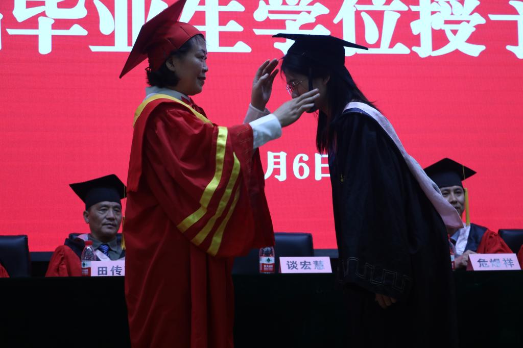 最后,进行了学位授予仪式,谈宏慧为2023届研究生和本科毕业生一一拨穗、颁发学位证书。