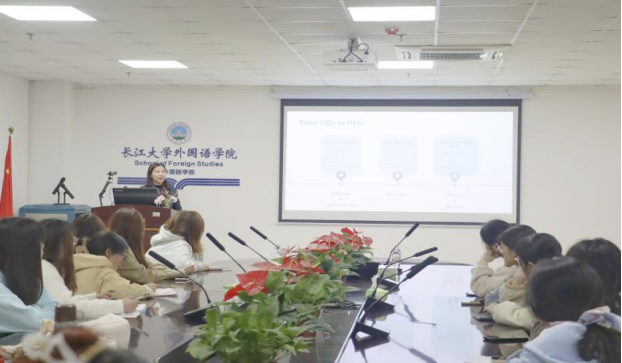 (文/田源 图/田源)为帮助学子明晰留学规划,提升国际视野,太阳成集团122ccvip于近日举办“留学攻略与经验分享”专题讲座。主持会议,特邀香港大学优秀员工江晨阳担任主讲人,公司党委副书记程坤、教师马欣、辅导员何稳和商英(卓越)12201班的同学参与了此次宣讲会。