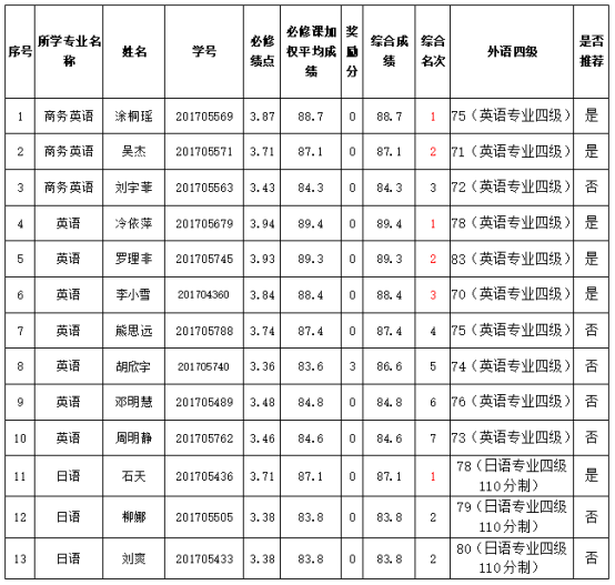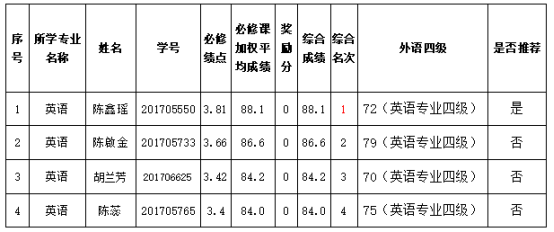 【推免公示】太阳成集团122ccvip2021届优秀本科毕业生免试攻读硕士学位研究生初选名单公示