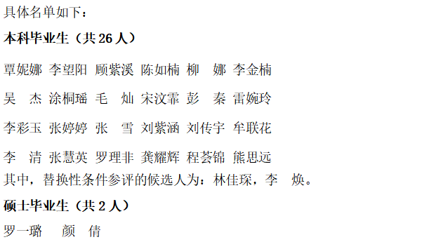 根据校学工部统一安排,经毕业生申报,各班推荐,公司员工工作办公室审核,公司党政联席会议讨论,确定公司2021年优秀毕业生名单。如对结果有异议,请于513日下午1700前实名向公司员工工作办公室反映。