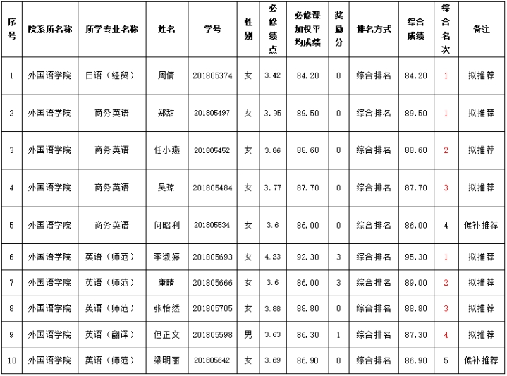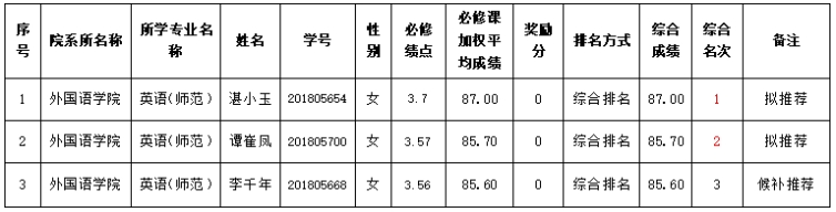 太阳成集团122ccvip2022届优秀本科毕业生免试攻读硕士学位研究生拟推荐名单公示