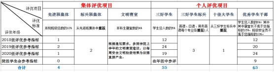 1.标兵班集体:公司本科生班级数为20及以下的推荐1个班级,本科生班级数大于20小于等于40的可以推荐2个班级,本科生班级数大于40小于等于60的可以推荐3个班级,以此类推;