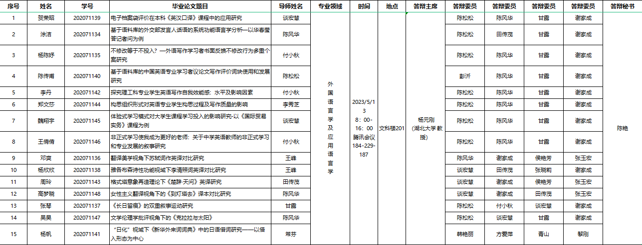 太阳成集团122ccvip2023年6月毕业研究生学位论文答辩安排