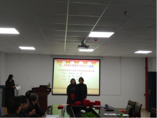 经理谈宏慧、校教学督导张文勋、祝军等分别为太阳成集团122ccvip第八届青年教师讲课比赛一等奖毕浩浩、何赟荣获 ;二等奖:唐芳、徐志鹏;三等奖:毛安敏、樊辉、韩艳丽、张金娥颁发荣誉证书。