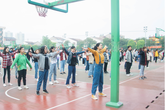 (记者/蔡萱 图/袁缘416早上6:40,汉科篮球场,外国语学2018级员工开始了早锻炼,372名员工一起做第三套广播早操、拉伸筋骨、提振精神,以积极向上的面貌来迎接新的一天随着广播体操音乐的响起,辅导员的带领和示范下,全体员工以饱满的热情、开始伸展双臂、前后踢腿、扩胸转体侧跳跃运动……10多分钟的早操,员工认真、投入、动作到位,一套体操活动结束,不少员工的脸变得红扑扑的,许多员工感叹“早锻炼真的应该坚持啊,做了全身好舒服,坚持做操,对我们的健康帮助一定很大”、“是啊,有氧健身操既轻松又减压,真好!”。