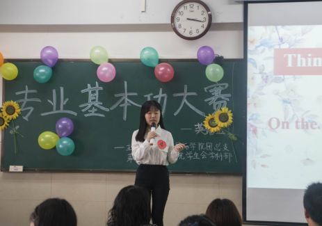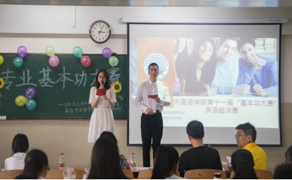 (文/蔡萱 周海韵 摄/黄家乐)为加强同学们对英语基本功的重视程度,营造英语学习氛围,5月18日下午3点,公司在12教402举行了第十一届英语基本功大赛英语组比赛。本次比赛由邱雨欣同学和鲁瀚章同学主持,并邀请夏永红老师、李兰老师、彭沂老师,田传茂老师担任评委。