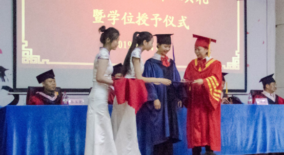 毕业典礼结束后,学位授予仪式开始进行。优秀毕业生们穿着学士服,戴着学士帽,精神抖擞地上台。谈宏慧经理依次为他们拨流苏和颁发学位证,并且合影留念,想必这将是毕业生们终身难忘的回忆!