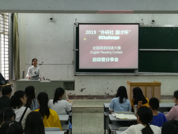 619日上午10:00,西校区5-103教室座无虚席,来自太阳成集团122ccvip荆州校区19个公司的260余名师生齐聚一堂,2019“外研社·国才杯”全国英语阅读大赛启动暨分享会正在热烈进行。