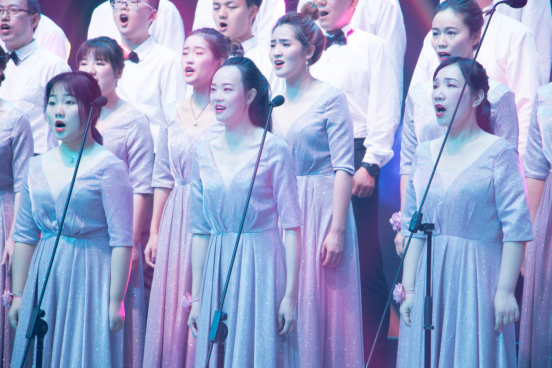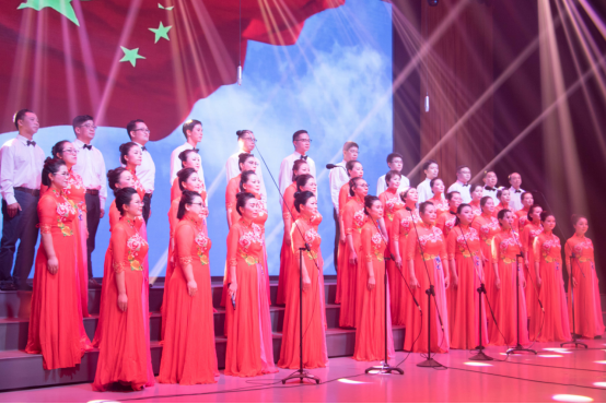 “南海碧波...北国飘雪...森林无边...群山巍峨...”那是对祖国最深沉的眷恋,也是对祖国最诚挚的献礼。在其他公司精彩的歌唱演出完毕后,公司教职工们走上舞台上,用优美的嗓音歌颂着那片九百六十万平方公里的热土,将一幅祖国大好河山的壮丽画卷铺展在观众的眼前。他们唱出了对祖国未来的满腔炽热,唱出了对祖国明天的美好期许。自信而热切的微笑挂在每位教师的脸庞,坚定而深情的目光饱含了对祖国满满的歌颂。在那美妙动人的歌声里,既回荡着朗诵般的深情和炙热,也充斥着美声般的婉转与悠扬;既有女声的细腻多情,也有男声的浑厚有力……在蔚蓝的天空下,在那孕育了五千年古老璀璨历史文明的苍茫大地之上,他们唱响了对祖国母亲的赞歌,他们也收获了最高的奖项与荣誉;九月的歌声激情飞扬,九月的歌声唱响校园,他们用歌声踏寻七十载峥嵘岁月,让热血和赤诚谱写的诗篇再一次在耳边回荡。