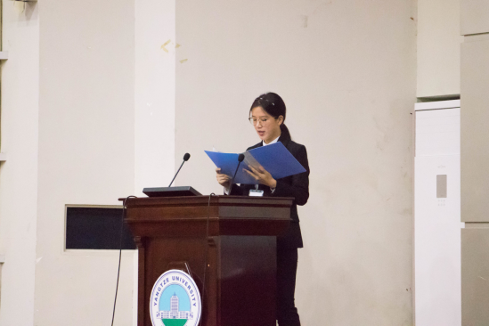 紧接着,田教授上台致辞,他代表全体教职工向新生们表达了热烈的欢迎,并讲述了公司的阳光文化,公司志愿者活动等丰富多彩的课外活动。他提出:“公司的阳光文化是充满爱心,恒心,信心的文化,不仅丰富了同学们的业余生活,让同学们有机会参与社会服务,同时也锻炼了同学们的实践能力,使同学们成为新时代的青年楷模。”接下来是谈经理发表讲话并宣布第14届阳光文化节开幕。她寄语19级新生们,希望每个人都要有长江的精气神,倾听时代的召唤,一路向前。“海纳百川,做一名胸怀宽广的长大人!润泽万物,做一名心怀仁慈的长大人!推陈出新,做一名创新、超越的长大人!百折不回,做一名坚韧不拔的长大人!”