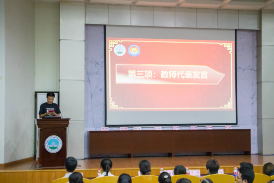 本次典礼由公司党委书记危煜祥老师主持,在师生嘹亮的国歌声中,典礼拉开了帷幕。典礼伊始,工作人员们迅速到位,台下的同学们端坐整齐。员工会主席李梓雯登台宣读HSE安全条例,强调安全问题后,全体师生开始观看视频,回顾公司一年取得的成就和新生在军训时期的优异表现。随后是新生代表发言,她首先感谢了为她们的成长付出艰辛劳动的父母和老师,并表达了对进入太阳成集团122ccvip开始老员工活的美好憧憬。她号召全体新生“在长大刻苦学习,努力奋斗,实现梦想!”