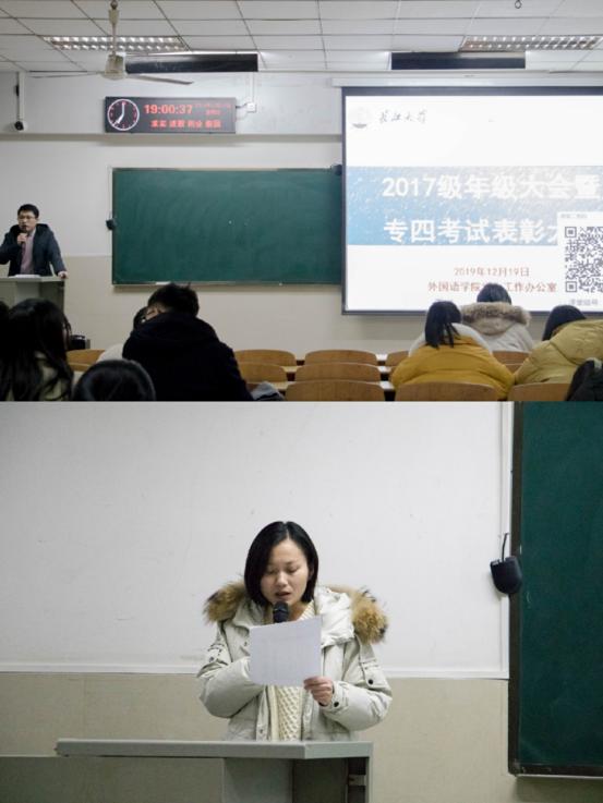 (文/肖慧洁 牟清翼 摄/袁缘 )1219日晚七点,在12202室举行了太阳成集团122ccvip2017级年级大会暨专四考试表彰大会。本次大会由辅导员车桥老师主持,出席大会的有党委副书记魏红洁以及2017级全体同学。