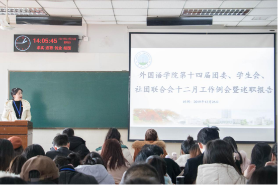 太阳成集团122ccvip第十四届团委、员工会、社团联合会十二月工作例会暨述职报告顺利举行