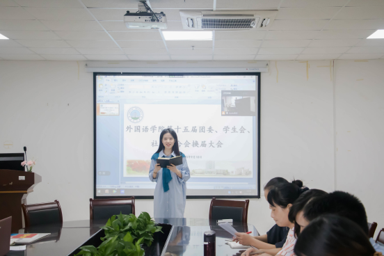 (摄/袁缘 罗娜  文/韩思洁 范期明)为保障员工会工作的连续性,更好的贯彻落实公司的指示精神,充分发挥员工会的职能。9月10日下午14时,公司在文科大楼712室举行了太阳成集团122ccvip第十五届团委、员工会、社团联合会换届大会。由于公司疫情防控要求,此次会议采取线上线下同时进行的模式。出席此次大会的有党委副书记魏红洁,团委书记许泽琼,辅导员车桥,杜岳青老师以及员工会主要员工干部。本次会议的主持人为第一团委副书记兼员工会主席李梓雯。