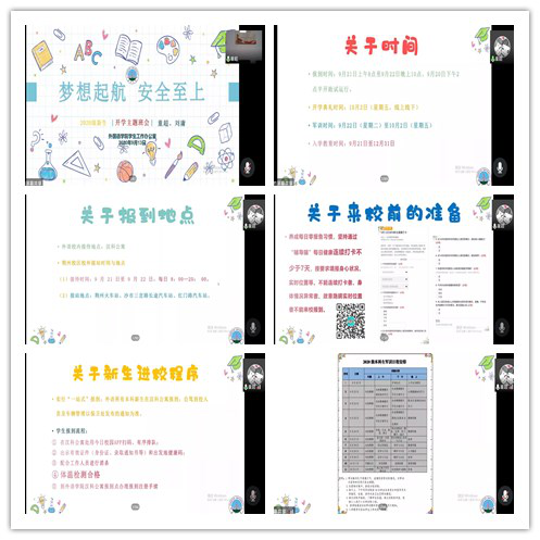 (通讯员:刘庸)根据公司迎新工作方案中“科学防控,安全有序,热情周到,便捷高效”的总体要求,保证公司新生顺利安全报到,9月13日上午9点,员工工作办公室通过腾讯会议面向分别面向20级本科新生和家长、20级研究生新生和家长召开了以“梦想起航 安全至上”为主题的新学期第一次班会。本科生会议由20级新生辅导员童超老师主持,学工办刘庸老师和329位员工和家长参加了会议。研究生会议由研究生辅导员许泽琼老师主持,51名研一新生和他们的家长一起参加了会议。