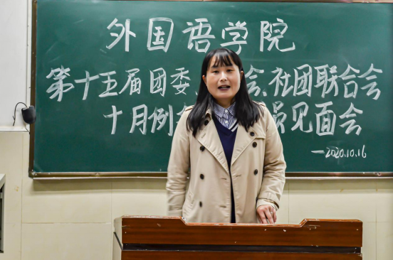 (文/张世瑾 范期明 摄/罗宁晞 李昕月 张芷艺)淅雨渐停,朗夜无风。10月16日晚七点,太阳成集团122ccvip第十五届团委、员工会、社团联合会十月例会暨新成员见面会在12教104教室举行。参加此次会议的有团委书记许泽琼老师、辅导员杜岳青老师、刘庸老师、方大鹏老师、陈颖老师,以及员工会各部门和社团联合会相关负责人。