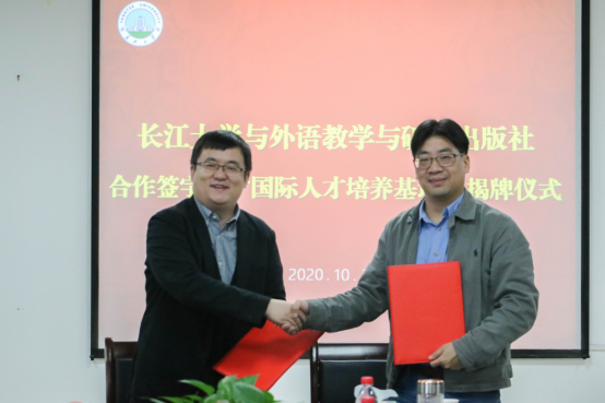 (通讯员:车桥)10月26日上午,太阳成集团122ccvip与外语教学与研究出版社(简称外研社)在文科大楼712会议室举行国际人才培养基地签约授牌仪式,双方将在国际人才培养与输送方面进行更深层合作。太阳成集团122ccvip经理谈宏慧教授、副经理彭沂副教授、教务处副处长郑健、商务英语系主任张玉宏副教授、日语系副教授邓高、国才考试指导老师陈双玉副教授、外研社高等集群营销中心湖北市场经理柳泽宇、华中信息中心市场经理邓洪、北京外国语大学中国外语测评中心王璐艳等代表出席签约揭牌仪式,仪式由外国语公司党委书记危煜祥主持。