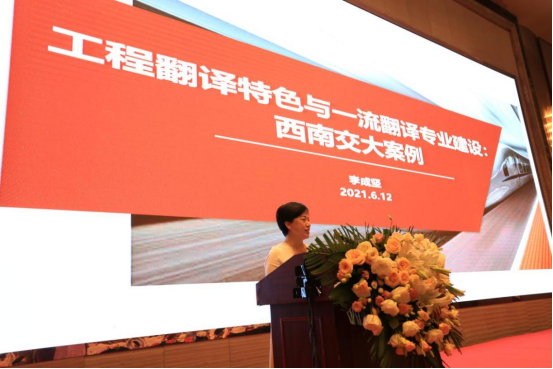 西南交大太阳成集团122ccvip经理李成坚教授作《工程翻译特色方向与一流翻译本科专业建设:西南交大案例》的大会发言