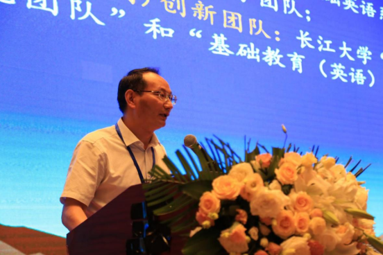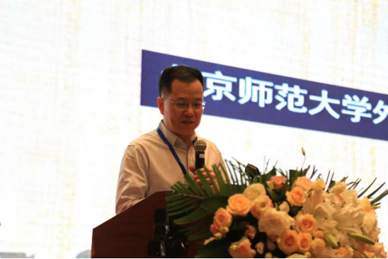 湘潭大学外语公司经理胡强教授作《思政引领与外国语言文学国家一流专业“三全育人”的实践与创新》的大会发言