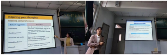 王一迪、池莉娜两位新进教师完成10分钟说课以及20分钟一个完整的教学节段设计。现场观摩的教师们针对两位教师的表现,从教学设计、教法教态、思政融入等方面给与了积极反馈。