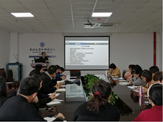 团委书记许泽琼老师对九月份和十月份的团委工作进行了梳理,公布了第十六届阳光文化节子活动初稿,同时对新生的心理普查工作做了详细说明和布置。
