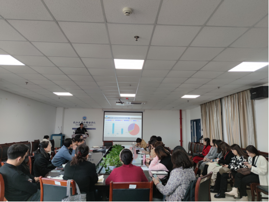 就业专干车桥老师汇报了公司2022届毕业生就业意向调查情况,并比对了近五年来公司英语和日语专业四级、考研和就业的情况,与老师们一同探讨“双减政策”下未来外语类专业毕业生的就业路径。