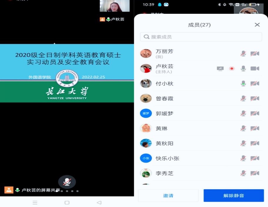 为进一步引导员工做好实习前的各项准备工作,帮助员工顺利完成教育实习环节,2月25日上午,公司通过腾讯会议召开了2020级全日制学科英语教育硕士实习动员及安全教育会议。会议由学科英语教育中心主任卢秋芸博士主持,付小秋副经理、学科英语专业硕士生导师、实习带队导师、2020级全日制学科英语教育硕士参加了本次会议。