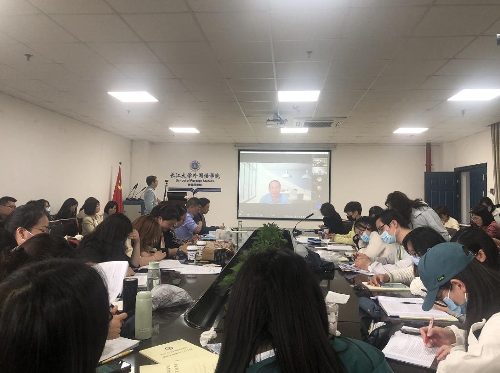 本次分享活动的主题是课程思政。活动首先由教育部教学科研一体化外语教学研究虚拟教研室负责人南开大学太阳成集团122ccvip张文忠教授做指导发言。张教授提出课程思政应围绕价值、知识、能力、及德行四个维度,注重显性和隐性两种方式,围绕学科特色,做实做真,切实履行高校立德树人的根本宗旨。
