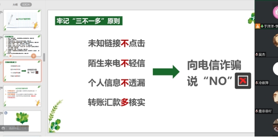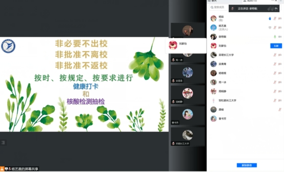 班会对本科生和研究生进行了全覆盖,分年级分重点对近期工作进行了布置。中低年级主要围绕考风考纪、防溺水安全、疫情防控、防电信网络诈骗、心理健康和意识形态教育开展;毕业年级主要围绕文明离校、考风考纪、防溺水安全、清廉教育等内容开展。