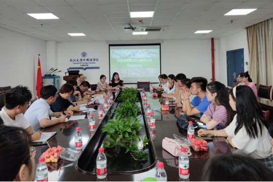 会上,21名毕业生代表先后发言,畅谈身为长大人、外语人的荣光与自豪、责任与使命,毕业生们悉数成长收获、感恩师友教泽、献言公司公司发展,根据在校期间的学习情况、社会实践、心理体验和生活经历,围绕公司课程设置、教学、实习实践活动、员工管理服务工作等方面提出了很多中肯的意见和建议。参会老师纷纷向毕业生表达了殷切的期望、亲切的鼓励和深情的祝福,希望毕业生同学们在今后学习和工作中永葆学习热情,注重传承与创新,不忘初心,砥砺奋进。