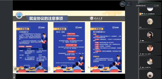 公司就业专干赵宇杰老师通过分析近年来毕业生就业数据,详细介绍了毕业生考编、考研、出国等状况,并对毕业季的各个重要时间节点进行了提醒,鼓励毕业生要理性看待求职就业,认真准备,多做尝试,充分利用教育部“24365就业平台”、公司就业指导中心公众号等资源,用好、用全、用足就业政策,在面试和实习中夯实自身能力,提高核心竞争力。