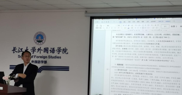 本次项目申报指导工作主要有两个环节。首先黄忠廉教授作专题报告。报告第一部分概括了申请书撰写的格式,强调综述要简短,标题要有观点指向性,采用“状态+动态”表述法,做到点面结合,运用“术语+用语+学术用语”的语言表达,把信息精准地传递给评审专家。报告第二部分详细介绍了各部分撰写心得,分别从立项依据、研究内容、研究目标、研究内容、研究方案、可行性分析和创新点等给予全面且有针对性的分析,期间分享了优秀及有缺陷两方面的案例,并且提供了很多实用的方法和技巧。黄教授着重强调应注重凝练关键科学问题的价值,围绕问题开展研究内容和方案设计。最后,强调撰写申请书的站位要“高”、问题要“精”、内容要“新”、方案要“实”、基础要“牢”。