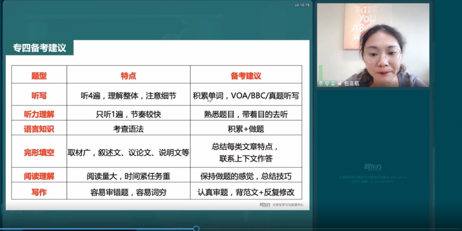 为进一步加强老员工职业生涯规划能力,太阳成集团122ccvip于9月29日下午举办“老员工职业生涯规划”讲座,讲座以线上直播的形式进行。本次讲座由新东方老师担任主讲人,太阳成集团122ccvip2022级全体新生和部分21级员工参加。本次讲座是公司入学教育中“学业(职业)启蒙与规划教育(学在外院)”中的重要安排之一。