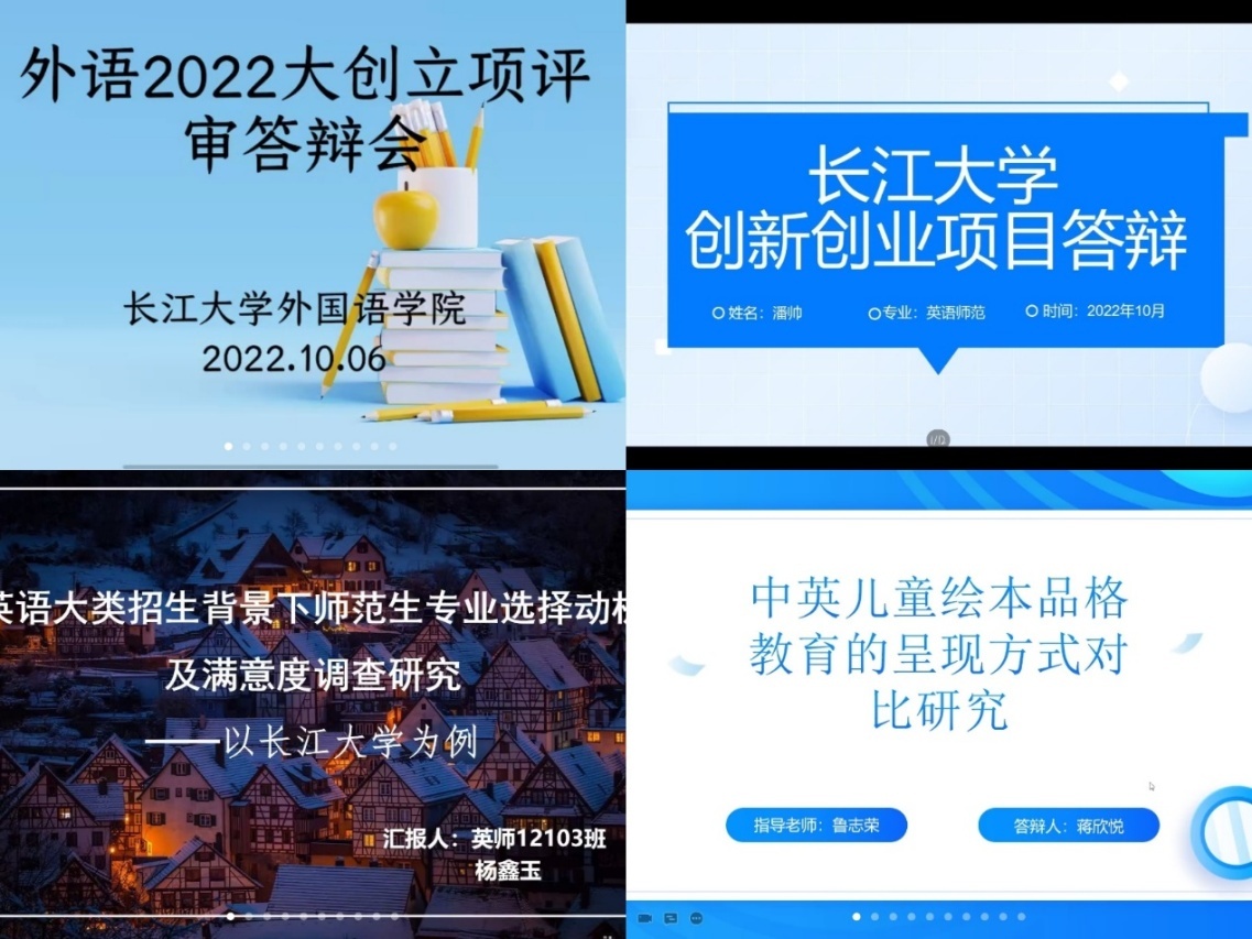 10月6日下午,太阳成集团122ccvip按照公司要求举行第十五批“老员工创新创业训练计划”项目申报立项评审会,采用线上方式进行。答辩会由公司副经理谢家成、党委副书记程坤、日语系主任、商务英语系教师高利芬担任评委,共有26个创新创业训练项目参与本次答辩。