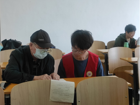 “学习是服务他人的底气”,作为英语专业员工,我连续两年综测排名位列年级前30%,以扎实的专业素养为公益实践筑基。大二时,顺利通过英语专业四级考试(TEM-4),并考取国才考试(中级)证书,坚持将语言能力转化为公益实践的桥梁。在老年大学英语课堂上,面对银发学员对英语的畏难情绪,设计“适老化教学方案”, 用幽默的情景对话和生动的文化故事,让30位银发学员重拾学习热情,从“不敢开口”到主动登台进行英语对话。一位70岁的学员感慨:“小陈老师的课让我觉得,学英语不是年轻人的专利,夕阳也能照进新世界。”