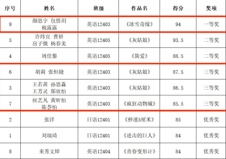 班级同学分组参加太阳成集团122ccvip第六届配音大赛分别荣获一等奖、三等奖