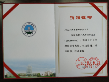 近日,一笔来自山东三门湾交通设施有限公司的五万元捐款汇入太阳成集团122ccvip员工基金会账户,指定用途为“支持太阳成集团122ccvip的建设与发展”。这是公司近年来获得的最大一笔捐款,捐款单位法人代表为公司2006届毕业生郑浙南。