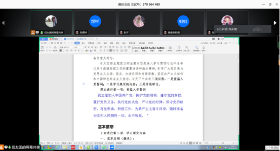为了进一步贯彻落实中央关于统筹推进疫情防控和经济社会发展的决策部署,5月14日下午,公司教工各党支部利用“腾讯会议”在线上开展了“支部主题党日”活动。活动分别由各教工党支部书记主持,支部全体党员共同参加,支部所辖系部室非党员教职工列席会议。
