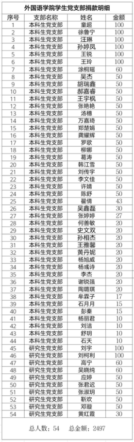 雷锋说:把有限的生命投入到无限的为人民服务之中去。广老员工党员虽然没有固定收入,但大家表示“献爱心,守初心”,员工党员不缺席!在力所能及的情况下,几乎所有的员工党员都献出了自己的心意。一名党员就是一面旗帜,一个支部就是一座堡垒,一份份温暖人心的捐款背后是外院人抗“疫”的实际行动,更是大家的责任担当。同学们纷纷表示,作为一名党员在抗击疫情阻击战中,要用实际行动践行初心和使命,经受住大战和大考。我们人人都是战斗的主角!