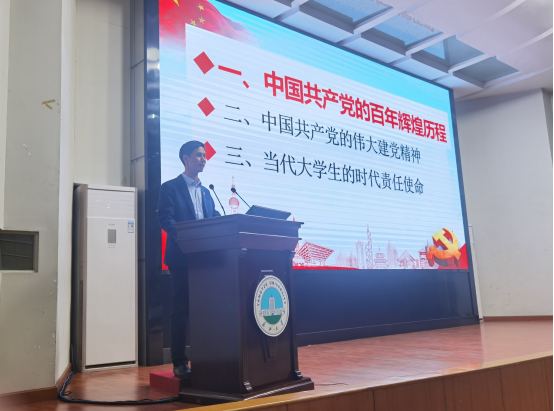 讲座中,危煜祥老师从习近平总书记在庆祝中国共产党成立100周年大会上的讲话入题,引导同学们简要地回顾了中国共产党的百年辉煌历程,然后结合大量的史料对中国共产党的伟大建党精神进行了详细的阐述,最后他从热爱伟大祖国、担当时代责任、坚定理想信念、锤炼品德修为四个方面就当代老员工的时代责任使命提出了具体要求,同时勉励同学们把握好大学时光,努力提高政治修养和学业水平,争做品学兼优的老员工,早日成为一名光荣的中国共产党党员。