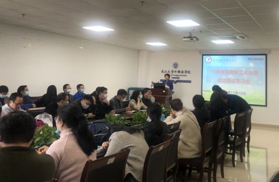 11月18日下午,公司在文科楼712会议室召开全院教职工大会,开展政治理论学习,安排公司教学、科研、消防安全等重要工作。会议由经理谈宏慧主持。
