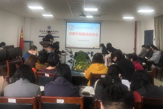为深入贯彻落实公司纪委推进清廉长大建设的“五三八四”行动计划,太阳成集团122ccvip第一时间召开党委会,专题研究清廉公司建设,并制定了“清廉外院”建设的十条举措。3月17日下午,太阳成集团122ccvip“清廉外院”建设动员会在文科楼712会议室召开,全院教职工参加了动员会。