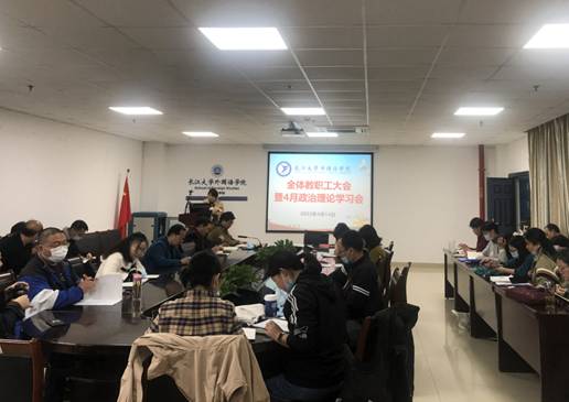 4月14日下午,公司召开4月教职工大会并开展政治理论学习,会议由经理谈宏慧主持。教工党员在文科楼712会议室参会,其他教师通过腾讯会议参会。