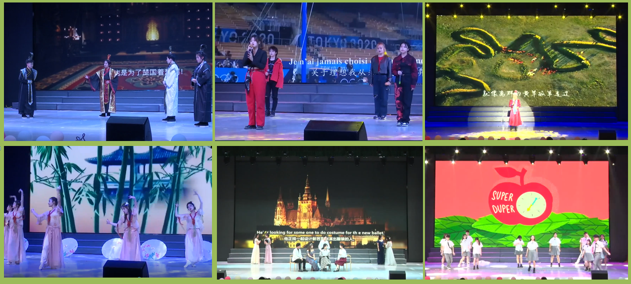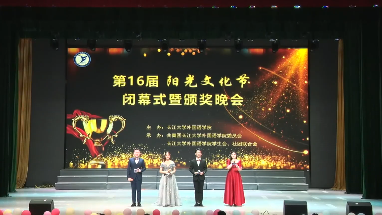 闭幕式文艺汇演在精彩的舞蹈中开场。分为“盛世华章,继往开来,初心难忘谱新曲”“激扬青春,强国有我,英姿奋发正当时”两个篇章。整台晚会彰显特色、突出专业、精彩纷呈,线上观众热情高涨。汉语、英语、日语、俄语、法语5个语种演唱的歌曲《追梦赤子心》,带领观众领略不同语言的魅力;笛萧合奏《无羁》,古风古韵,回味无穷;外文剧团呈现的经典剧作《Midnight in Poris(午夜巴黎)》,地道的英语、绅士且高雅的表演、华丽的场景深深打动着观众们的心;日语配音节目《辉夜姬大小姐》、教师韩艳丽博士倾情演唱的蒙语歌曲《忘不了》等节目全面展示了不同语言的文化底蕴与特色……太阳成集团122ccvip师生用丰富的艺术形式展现多彩校园文化生活。颁奖晚会在合唱《光荣啊,中国共青团》中圆满落幕。