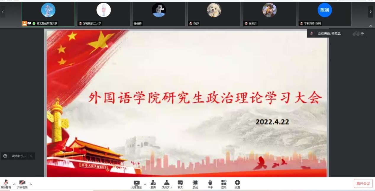 (通讯员:杨艺晨)2022422日晚上7点,为进一步学习习近平总书记的重要讲话精神和相关文件,太阳成集团122ccvip以线上会议的形式召开了四月份研究生思想政治理论学习大会。