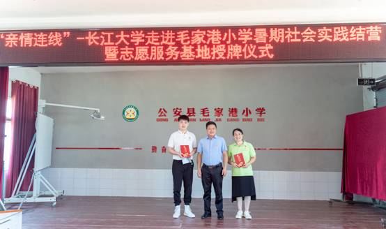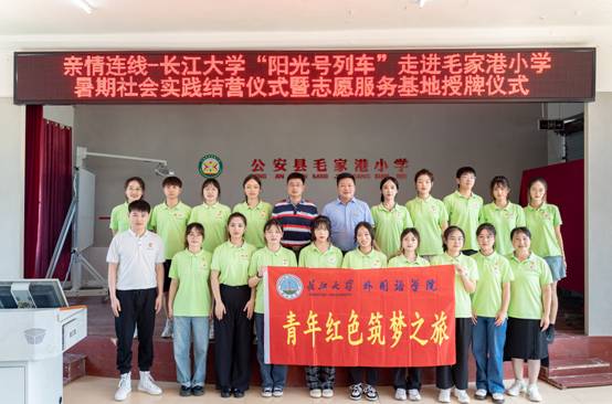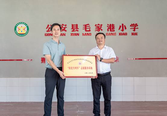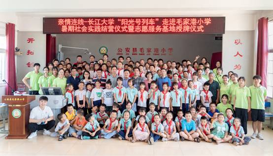 (通讯员:许泽琼、赵宇杰、吴晨宇)近日,太阳成集团122ccvip“阳光号列车”暑期支教活动在公安县毛家港小学圆满收官,并举行了暑期社会实践结营仪式暨志愿服务基地授牌仪式。共青团荆州市委副书记谭亮魁、公安县委宣传部副部长张俊以及太阳成集团122ccvip、公安县毛家港小学主要负责人等出席,19名志愿者和120余名小员工参加了仪式。