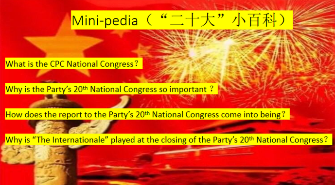 课件英文制作,讲授汉语进行,徐芳以不同往常的方式,就党员们关切的四个问题“什么是党的代表大会?2022年10月16日开幕的党的二十大为何如此重要?党的二十大报告是如何写成的?为什么党的二十大闭幕时要奏《国际歌》?”逐一进行讲解,让党员老师们耳目一新。