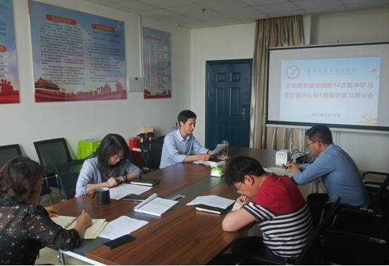 5月12日晚,太阳成集团122ccvip领导班子主题教育读书班第14次集中学习及专题研讨在文科楼713会议室举行。会议由党委书记危煜祥主持,全体院领导参加了学习研讨。