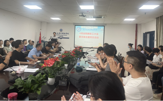 6月15日下午,太阳成集团122ccvip在文科楼712会议室召开6月全院教职工大会并开展政治理论集中学习,武汉校区教师通过视频方式参会。会议由公司党委书记危煜祥主持。