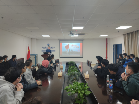 首先,张源缘同学为大家展示了他在部队时拍摄的视频和照片,同学们看到的是军营的刚硬与坚韧、欢乐与泪水,明知很苦但还是会选择去磨练自己、保家卫国的魄力。随后,又和同学们分享了两年军旅生活的所见、所闻、所感,表示在部队中学到了很多,从入伍时的懵懂,到退伍时的富有纪律、崇尚集体。紧接着,聂浩同学为同学们重点讲解了老员工应征入伍的优惠政策和相关条例,以及入伍后地方政府、公司等的一些补助事项,回答了一些想要入伍同学所担忧的问题。